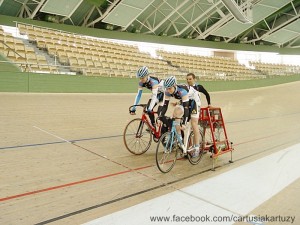 W ubiegły weekend zawodnicy Cartusii trenowali na torze kolarskim BGŻ-Arena w Pruszkowie. Większość z nich pierwszy raz miała styczność z torem kolarskim, więc spora część czasu poświęcona została regułom i podstawom zachowania bezpieczeństwa oraz na samo oswojenie z drewnianą nawierzchnią oraz rowerem typu ostre koło. W drugiej części konsultacji udało się już przeprowadzić trudniejsze technicznie treningi, które w większości wychodziły bardzo poprawnie. W wolnej chwili udaliśmy się również na pobliski basen w celu odnowy i rozluźnienia.